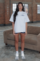 A cute staple with serious street cred. introducing the Lucky Thirteen Cheyenne Oversized Hoodie in Grey Marle! Designed with a relaxed hood. drop shoulder design. ribbed hem and cuffs. oversized fit. a roomy front pocket. soft fleece interior for a cozy feel. White Fox puff print text side front and centre back. and printed graphic detailing. For the ultimate cosy street style fit pair with the matching Lucky Thirteen Cheyenne Sweatpants!
